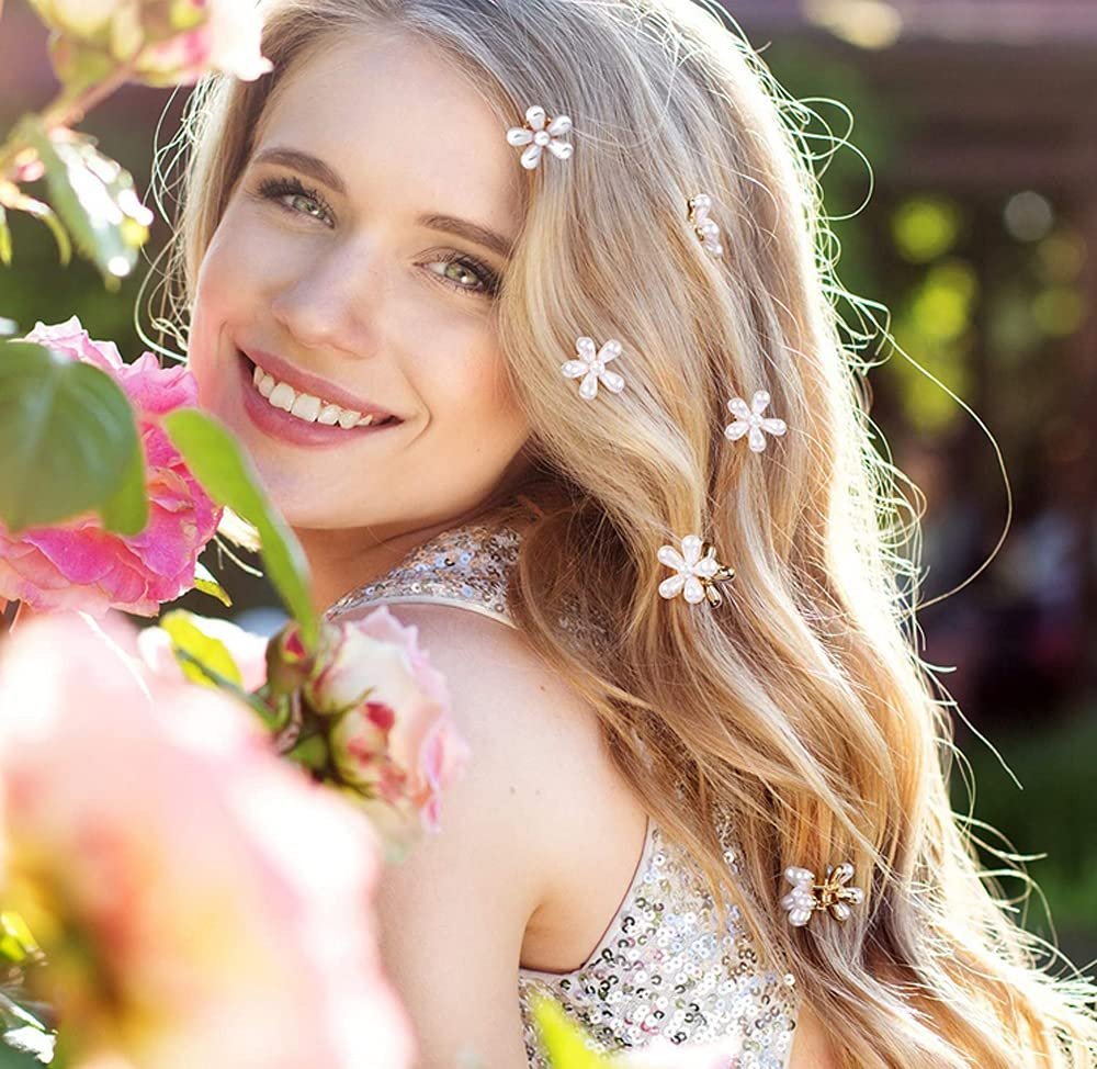 Sweet style hair pin: These hair clips are made of artificial pearls and alloy material, the white pearls are arranged in the shape of daisy flowers and embedded on golden claw clips, which are simple, beautiful and elegant, look nice on your hair and add some sweet temperament to your whole outfits.