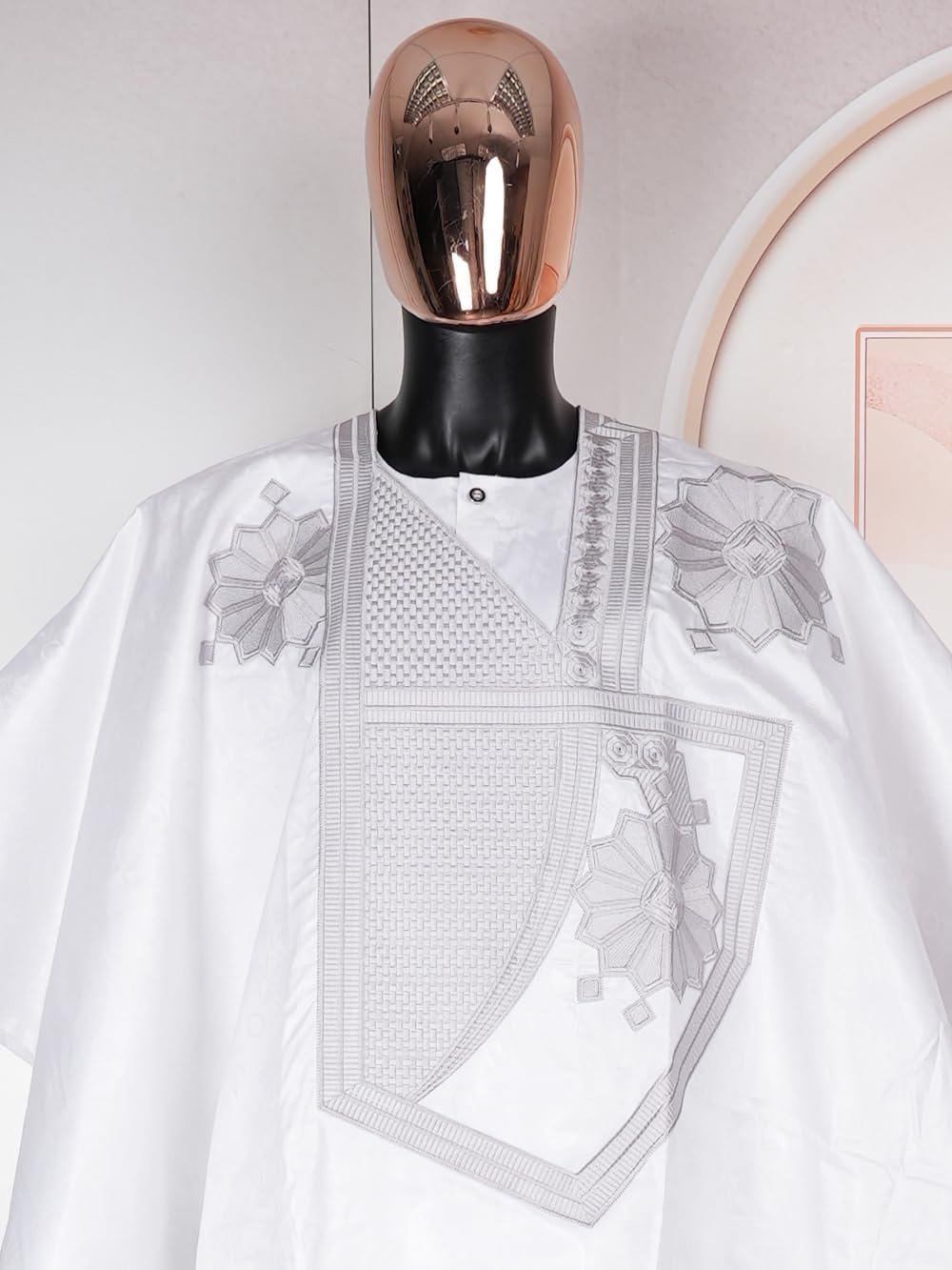 Be the first to review “HD African Bazin Couple Clothes Traditional Embroidery Agbada Boubou Caftan Set for Man”