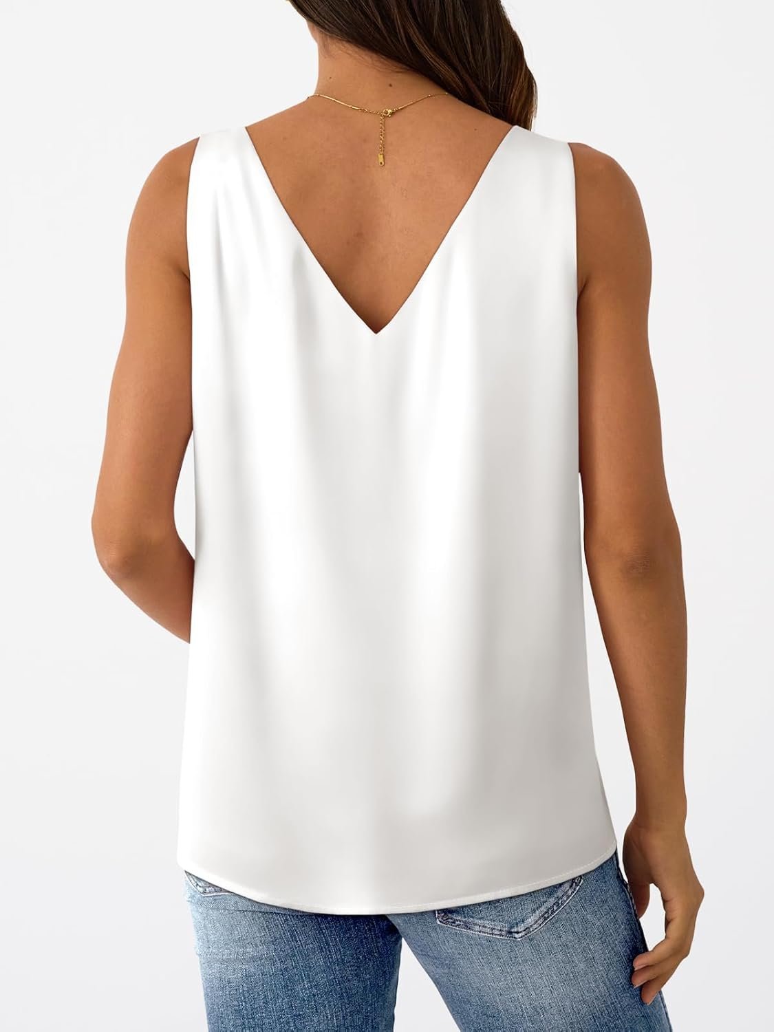 LILLUSORY Women Silk Satin Tank Top V Neck Summer Blouse Sleeveless Shirt Business Casual Dressy Outfit Vacation Clothes