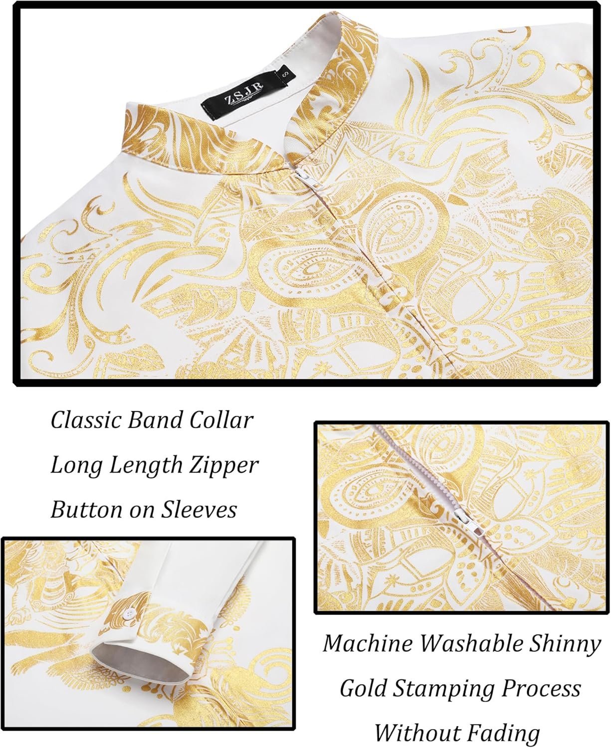 Mens African 2 Piece Set Zipper Nigerian Dashiki Metallic Shirt and Pants Outfit Gold Stamp Printed Long Traditional Suit